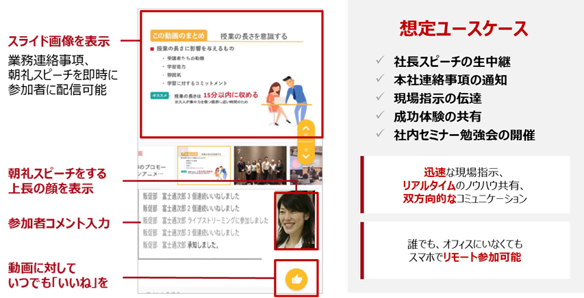 デジタル朝礼などライブ配信の利用イメージ