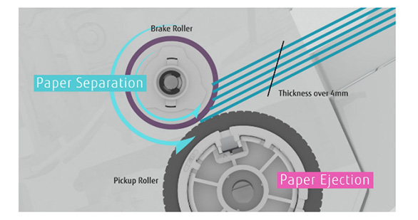 A powered-up multifeed detection is now available to make scans easier. While the conventional multi-feed detection simply detects double feeds with the ultrasonic sensors regardless of document, the improved multi-feed detection automatically identifies thick plastic cards and documents with stickers, photos, or adhesive labeling to prevent the detection as double feeds. Additionally, there is no need for users to switch profiles according to document, streamlining scanning of mixed batches whether this may be a mixture of driver’s licenses and application documents.